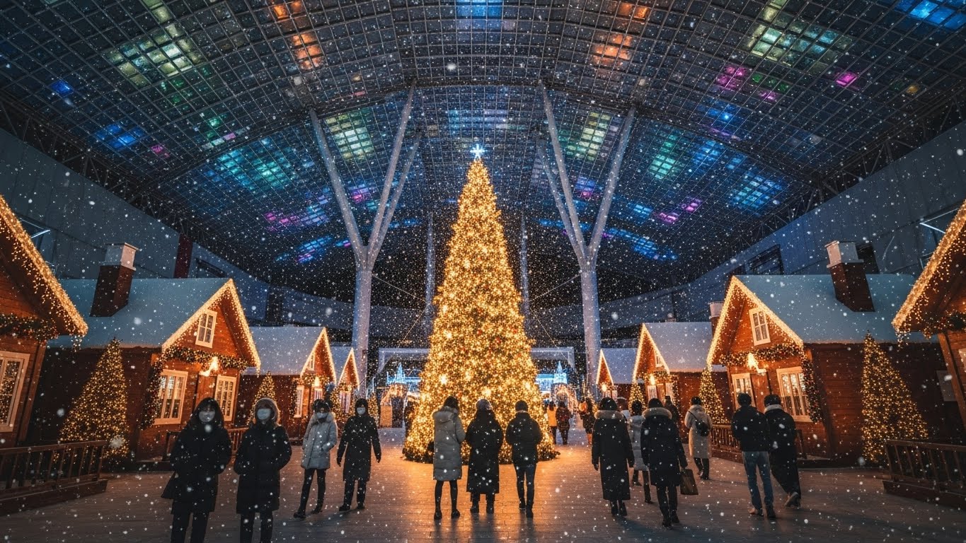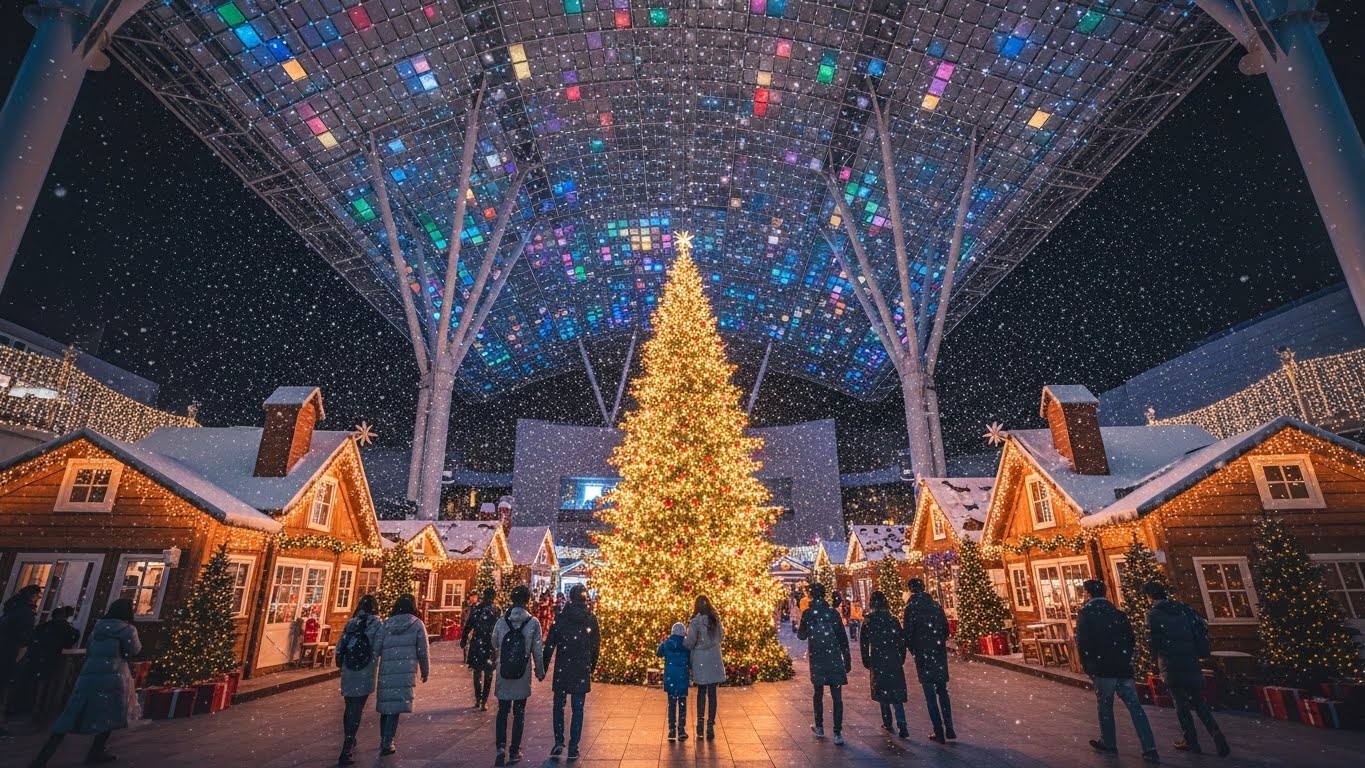 마을의 중심부에는 무려 9미터 높이에 달하는 압도적인 크기의 메인 크리스마스 트리가 우뚝 솟아 있답니다. 화려한 전구와 오너먼트로 장식된 이 트리는 축제의 상징이자 최고의 포토존으로 사랑받고 있어요. 밤이 되면 수만 개의 조명이 불을 밝히며 영화의전당 천장 조명과 어우러져 장관을 연출한답니다. 이곳에서 찍는 사진은 인생샷을 보장할 만큼 아름다우니 줄을 서더라도 꼭 한 장 남겨보시길 추천드려요.
