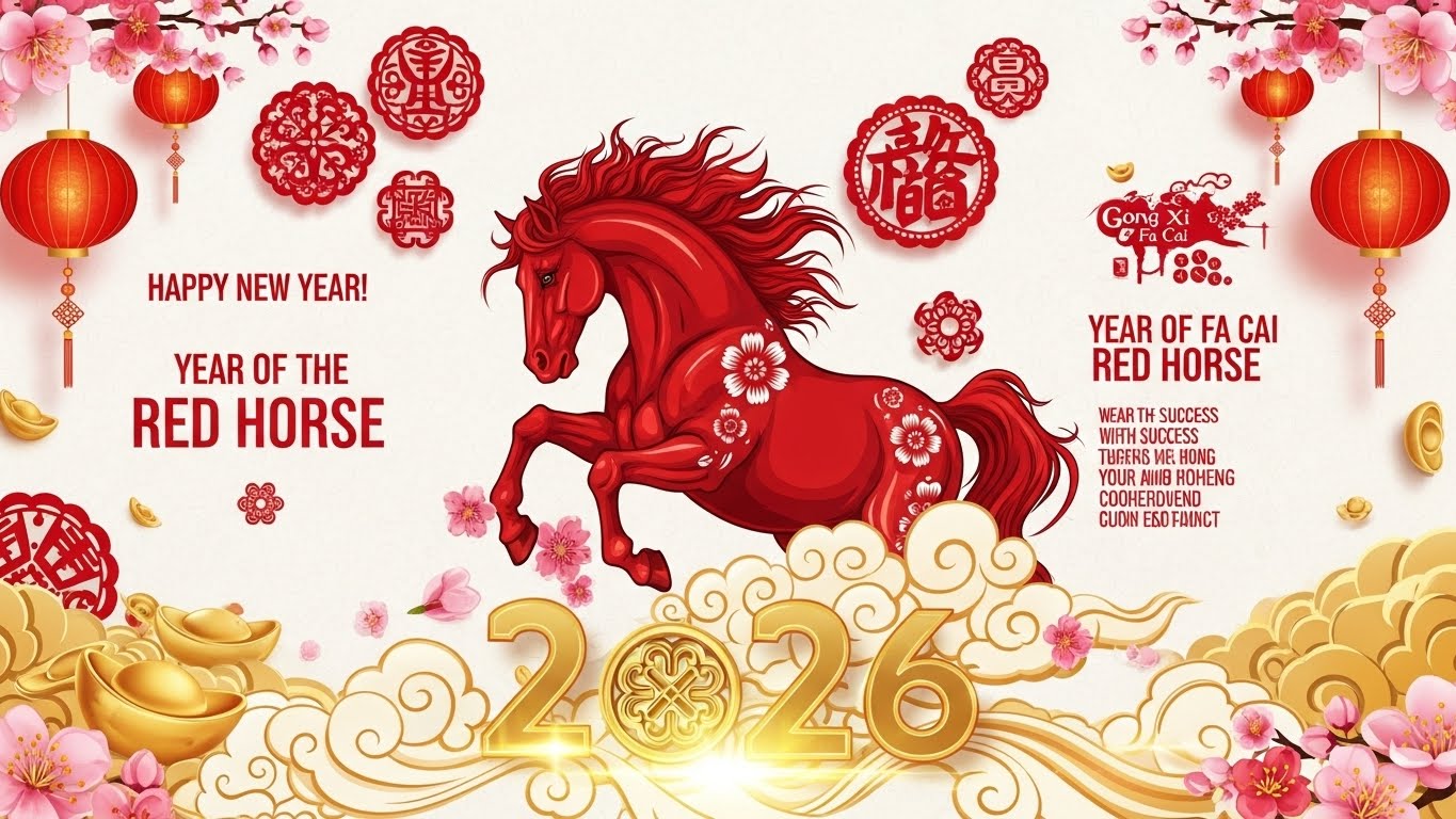 2026년은 병오년(丙午年)으로, '붉은 말(Red Horse)'의 해입니다. 붉은색의 열정과 말의 역동성이 합쳐진 활기찬 해를 상징합니다.