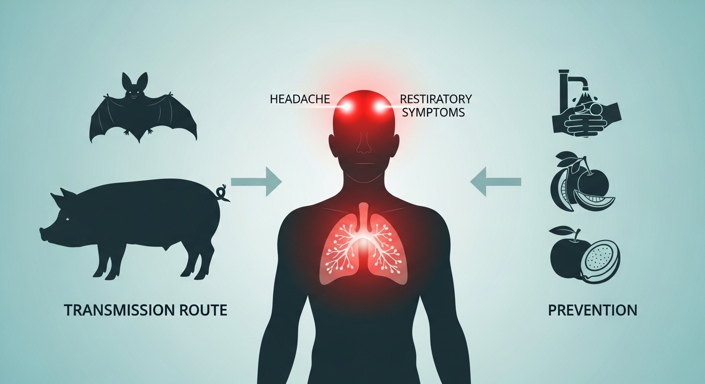 이 바이러스는 파라믹소바이러스과에 속하며, 자연 숙주는 과일박쥐로 알려져 있어요. 박쥐가 먹다 남은 과일이나 배설물에 오염된 수액을 사람이 섭취했을 때 감염될 수 있다는 사실, 알고 계셨나요? 사람 간의 전파 가능성도 제기되고 있어 가족 간 감염이나 병원 내 감염 사례도 보고된 바 있기에 더욱 조심해야 해요.
