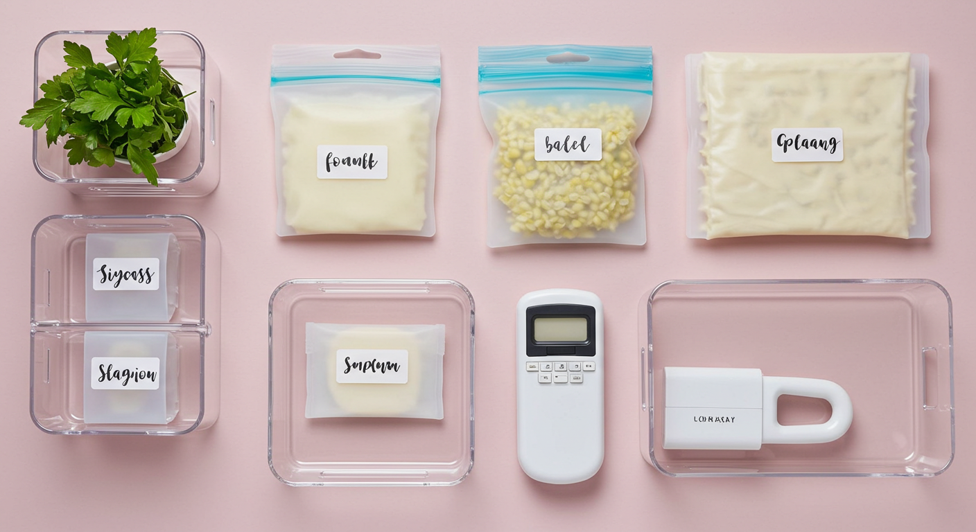 제가 직접 겪어보니 가장 큰 문제는... 내용물이 보이지 않는 검은 비닐봉지였어요. 안에 뭐가 들었는지 모르니 계속 방치하게 되고, 결국 썩어서 버리게 되더라고요. 모든 식재료는 투명한 용기나 지퍼백에 옮겨 담는 것을 강력 추천해요. 한눈에 내용물이 보여서 재고 파악이 쉽고, 중복 구매를 막아준답니다. 여기에 구매 날짜나 유통기한을 적은 라벨까지 붙여주면 완벽 그 자체!