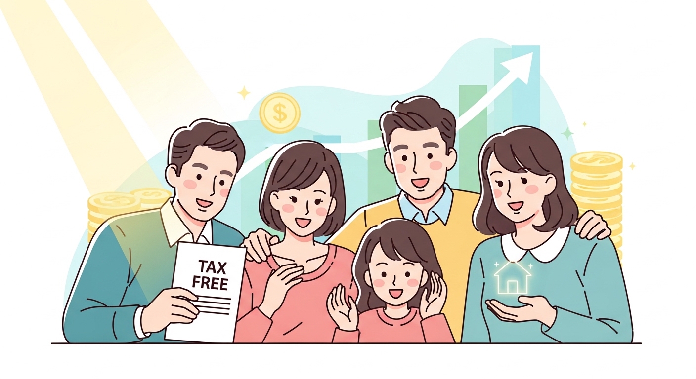 증여세는 10년을 주기로 공제 한도가 리셋됩니다. 성인 자녀에게는 10년에 5천만 원(미성년자는 2천만 원)까지 세금 없이 돈을 줄 수 있어요. 만약 자녀가 태어나자마자 2천만 원, 10살에 2천만 원, 20살에 5천만 원, 30살에 5천만 원을 주었다면 총 1억 4천만 원을 세금 0원으로 물려줄 수 있는 거죠. 일찍 시작할수록 마법 같은 복리 효과를 누릴 수 있답니다.